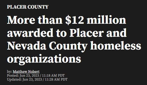 Fox 40 Online News Article Mar 28 Written By Donelle Collins https://fox40.com/news/local-news/placer-county/more-than-12-million-awarded-to-placer-and-nevada-county-homeless-organizations/ Donelle Collins